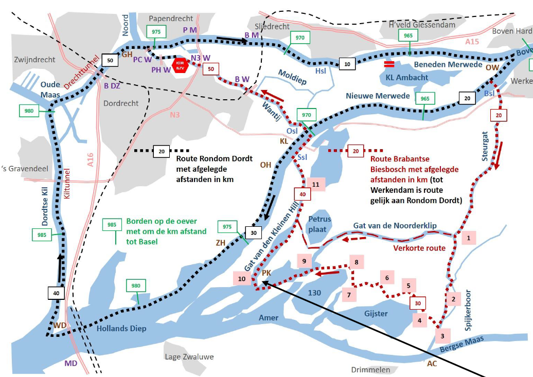 Een pittige tocht vanuit KDR&ZV oftewel de Dordtsche. Je gaat over open breed, stromend water met grote scheepvaart.De reguliere route voert over de grote rivieren rondom het eiland van Dordrecht. Vanaf de roeivereniging varen we het Wantij uit, over de Beneden Merwede, de Nieuwe Merwede, het Hollands Diep, de Dordtsche Kil en de Oude Maas terug naar het startpunt. Een machtige belevenis om onder de grote bruggen van het Hollands Diep door te varen!